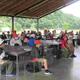 班の仲間と力を合わせていかだを完成させ、水の上を進みました。最初は、上手く漕げず苦戦していましたが、声を掛け合いながら進んでいく班が増え、子供たちの表情から達成感が伝わってきました。