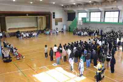 七ヶ浜町社会福祉協議会の方々をお招きして、以前から学習を続けてきた防災学習の発表を行いました。