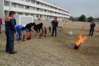 ・心肺蘇生法訓練 ・119番通報について ・毛布を利用した負傷者搬送訓練 ・濃煙ハウス体験 ・消火器使用訓練 を消防署の方の指導のもと行いました。