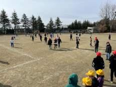 6年生が卒業に向けて、これまでの感謝の気持ちを伝えるために「ありがとうプロジェクト」を立ち上げました。今日は、1年生と6年生が一緒に遊ぶ日です。6年生が縄跳びあそびや鬼ごっこなどを計画し、みんなで楽しく遊びました。