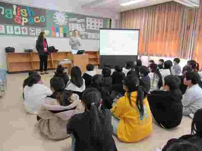 七ヶ浜国際村国際交流係のクック・ヘザー先生とマコウエン・レン先生に来校いただき、プリマス交流授業を行いました。七ヶ浜町と姉妹都市であるアメリカ・プリマスについて、動画を見たり、グループディスカッションをしたりして、文化の違いについて知ることができる貴重な時間になりました。