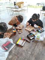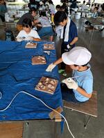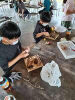 9月6日 午前中、1つ目の活動は、貝殻と流木のクラフト。昨日、海で拾った材料を思い思いに組み合わせ、力作がどんどん生み出されています。
