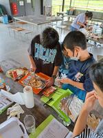 日本の伝統食品であるみその歴史を知ったり、写真や資料を見て発酵の仕組みを学んだりすることができました。また、何種類かのみそを食べ比べする活動を行いました。子供たちは「香りが違う。」 「甘みがある。」と五感を使った学びに、とても興味深く取り組んでいる様子が見られました。