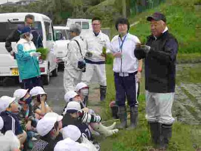 佐藤壮一さんの田んぼをお借りして、ボランティアの皆様、町の生涯学習課の皆様の御協力のもと、田植え体験を行いました。