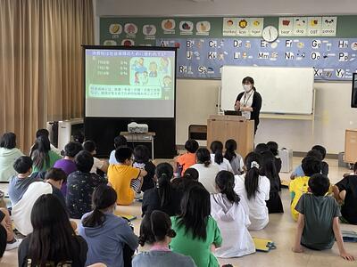 環境教育に関する授業「国がなくなる?!〜キリバス共和国と地球温暖化〜」を実施しました。講師に日本キリバス協会代表理事 ケンタロ オノ氏を迎え、キリバスでの実例を題材にした地球温暖化・気候変動に関するお話を聞きました。美しい海をもつキリバス共和国の自然風景に子供たちは感動しました。そして、そこで起きている被害について知ることで、環境問題について自分事として考える良い機会を得ることができました。