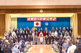 3月19日(火)第44回卒業式が挙行され、卒業生57名全員が校長先生から卒業証書を受け取り、学び舎を巣立っていきました。保護者の皆様、PTA会長をはじめとする地域の方々、在校生代表の5年生、そして教職員に見守られながら、卒業生一人一人が感謝の気持ちと未来への夢を精一杯表現していました。表情や所作、また歌声から、感謝の気持ちが会場にいる全員の心に温かく伝わっていました。