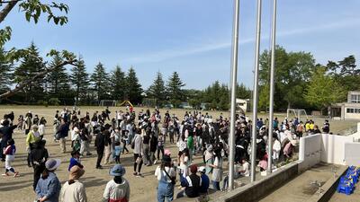 「力を合わせて 全力でがんばれ 汐見っ子!」