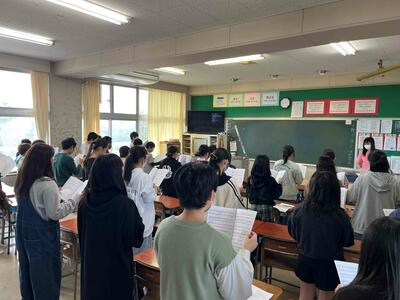 汐見小の子供たちは、学習発表会に向け、日々練習に取り組んでいます。6年生の歌の練習では、パートごとに分かれ、気持ちを込めて歌っています。